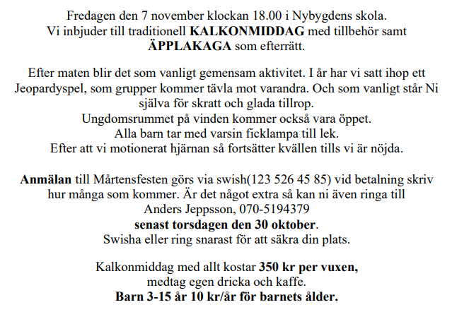 Måndagen den 3 februari kl 19.00 i Nybygdensskola.